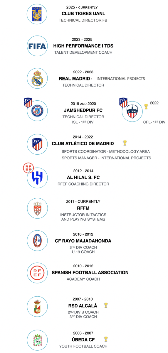 This is Julian´s career over twenty-two years of experience as a Coach, Football Methodological Coordinator and Technical Director across various clubs and levels.